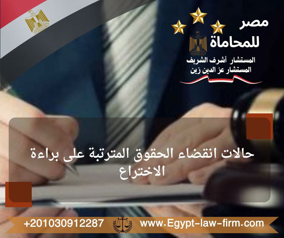 حالات انقضاء الحقوق المترتبة على براءة الاختراعنصت المادة (26) من القانون رقم ٨٢ لسنة ٢٠٠٢ ، والخاص بإصدار قانون حماية