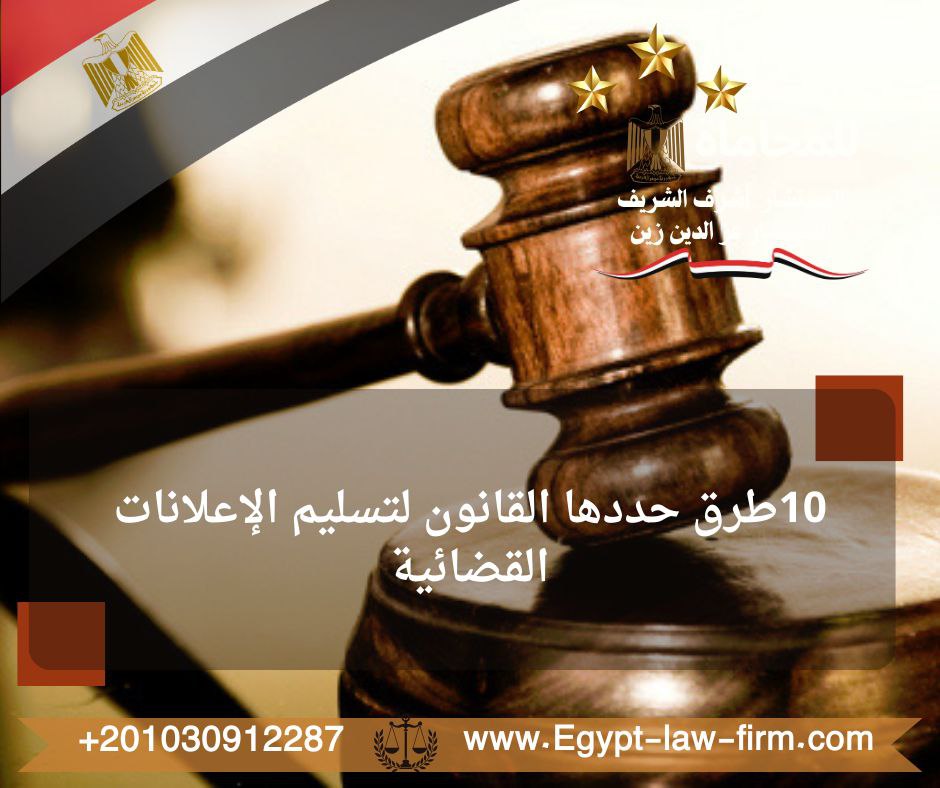 10طرق حددها القانون لتسليم الإعلانات القضائيةنصت المادة (١٣) من قانون المرافعات المدنية والتجارية، على أنه فيما عدا ما نص عليه